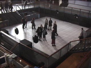 As visitors step onto the surface of the image, they enter into a sonically immersive space. Parabolic speaker elements, which focus sound into extremely localized areas, aurally project a multichannel sonic landscape over the interface. Seconds, minutes, hours and days are registered as individual musical and sonic events, enveloping the visitors as they walk across the huge surface of the projection.