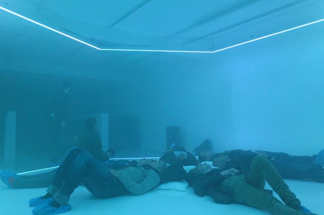 Displace 2.0 is the second iteration of works conducted within the context of a larger research project entitled “Mediations of Sensation” developed by Chris Salter and anthropologist David Howes. The aim of “Mediations” is to create a space where contemporary art practice can be informed by advanced research in sensory anthropology and history, and vice-versa. Sensory anthropology is dedicated to exploring how the senses are distinguished, ranked, mixed, deployed and enjoyed in different cultures. Displace 2.0 mirrors this anthropological experience by offering an embodied, technologically augmented series of environments designed to open a crack in the conventional Western sensorium and transport the visitor into a parallel sensory world.