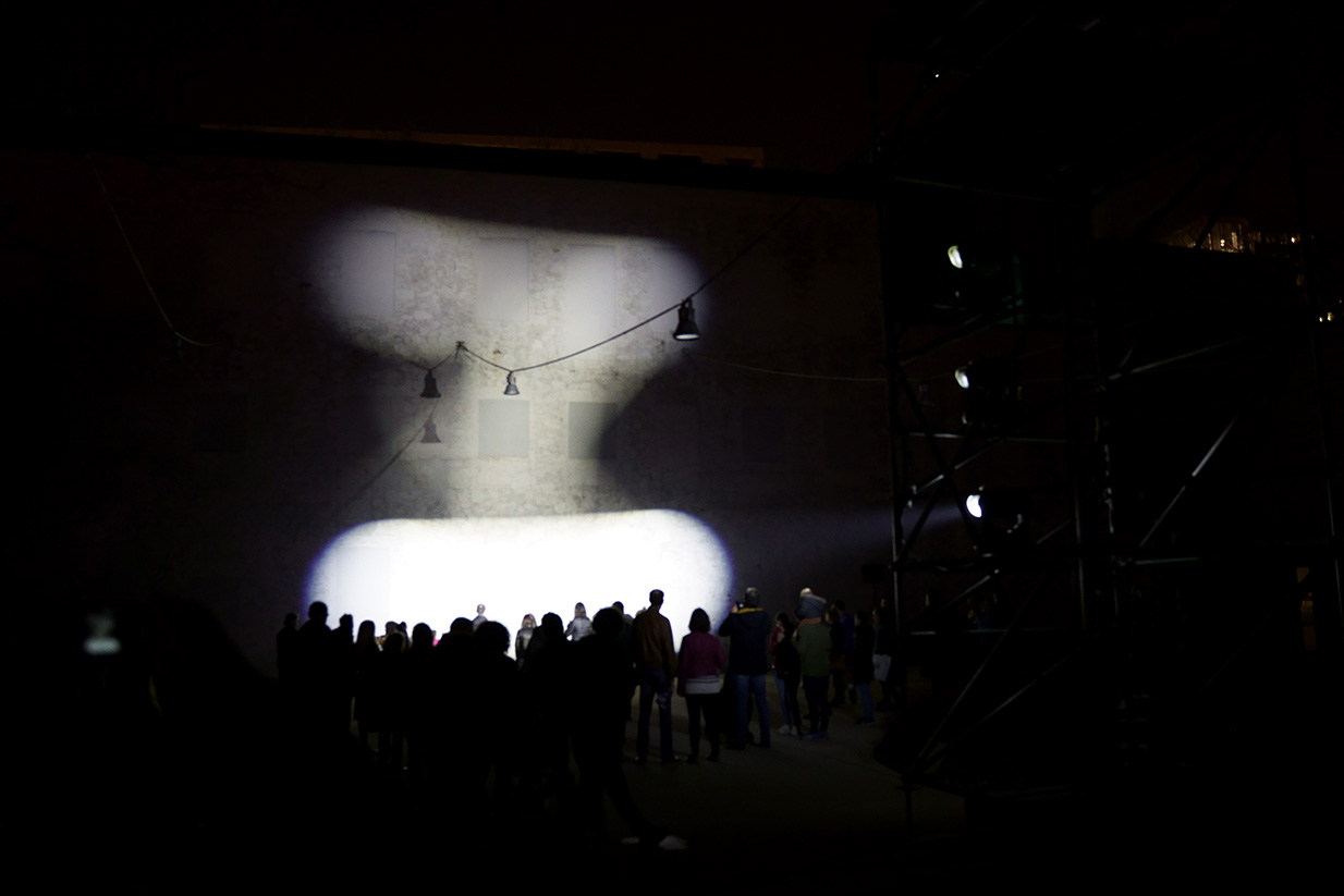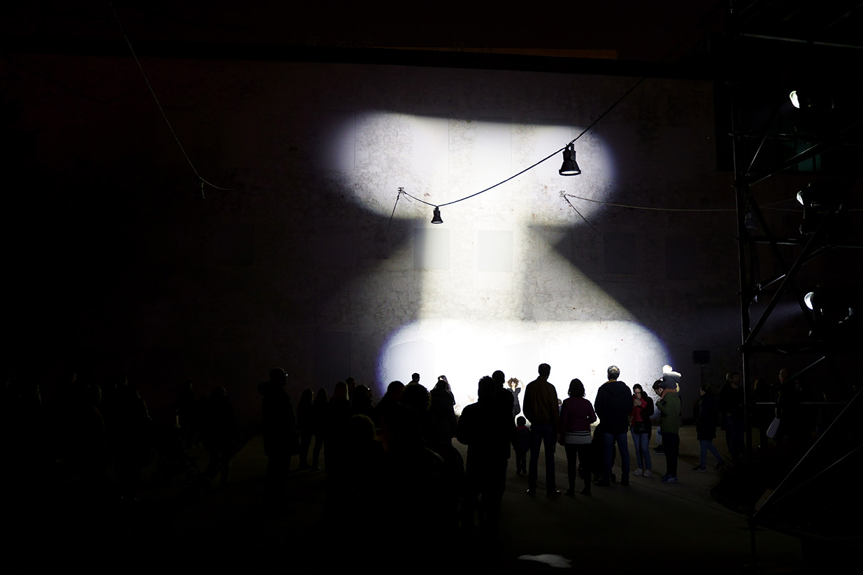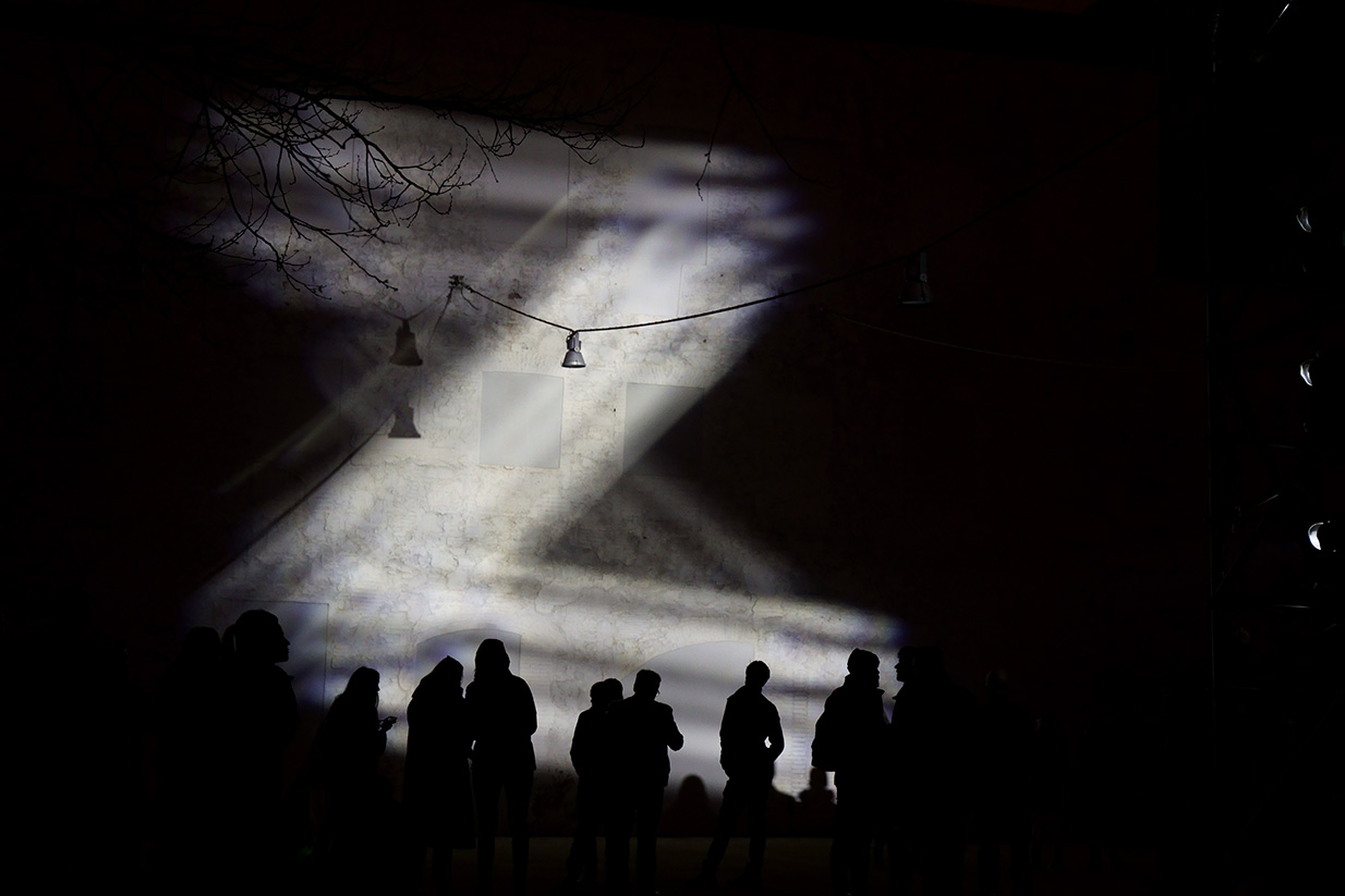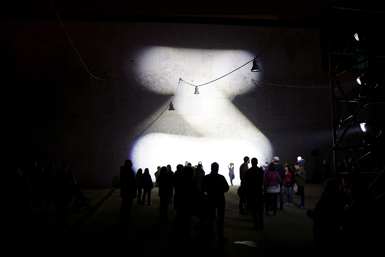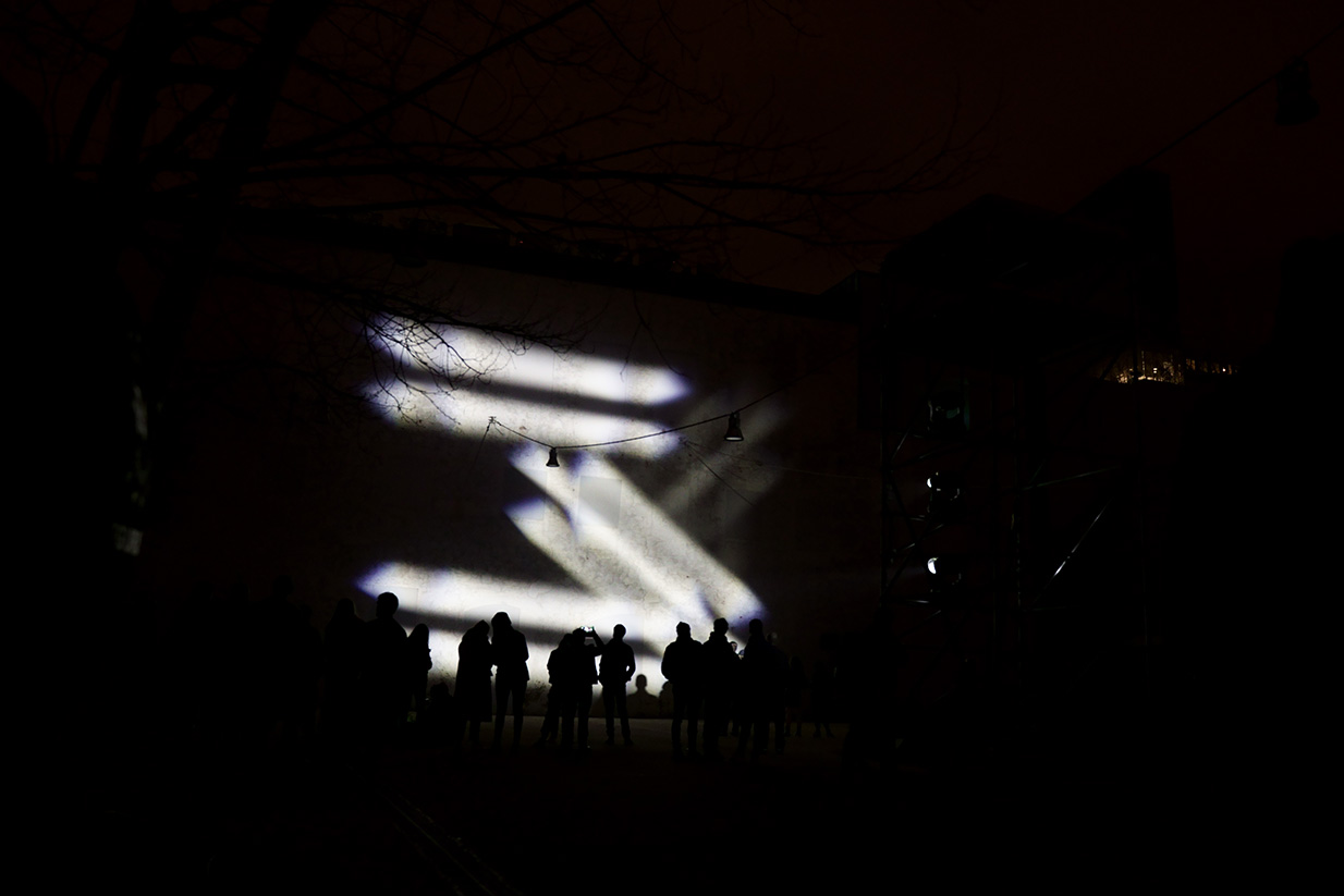 SNN#2: Light/Space/Prop (after Moholy-Nagy) is a dynamic, large-scale light and sound installation designed for a public space that updates Bauhaus artist Lazslo Moholy-Nagy’s 1920s vision of a new “electrified moving image” – a Light Prop for the Electric Stage. Originally created for the city wide LLUM_BCN light festival in Barcelona in February 2020, a series of slowly modulating light images are distorted by lenticular lenses attached to five moving lights mounted in a tower in the center of the Can Framis Art Foundation courtyard. These moving lights rotate so that planes of light images can move across the walls of the Foundation at different speeds and rhythms, influenced by a series of spiking neural networks (SNN’s) visualized and projected at mammoth scale in the space. Moholy-Nagy described a new kind of light environment where “light and motion once again become elements of creation.” SNN#2 transports this vision into our new algorithmic machine age, creating an ever-shifting, almost contemplative environment that radically slows down our own perception of space and time.